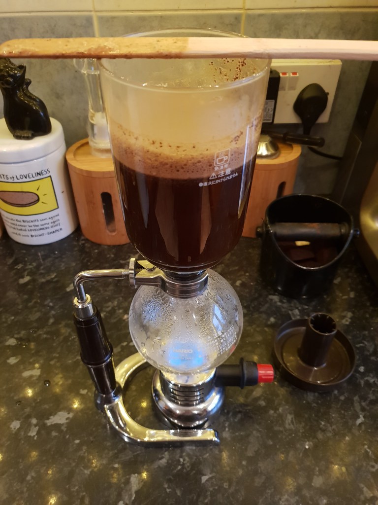 So what was it like in the syphon? Not good. I don’t know about other folks, but I find the syphon is unbelievably picky about coffees and it has a habit of bringing out all the top, sharp notes of anything you put into it so in this instance the coffee just became unpleasantly strong and almost sour so I gave that up as a bad idea and turned to machine number three and this is where I struck gold.